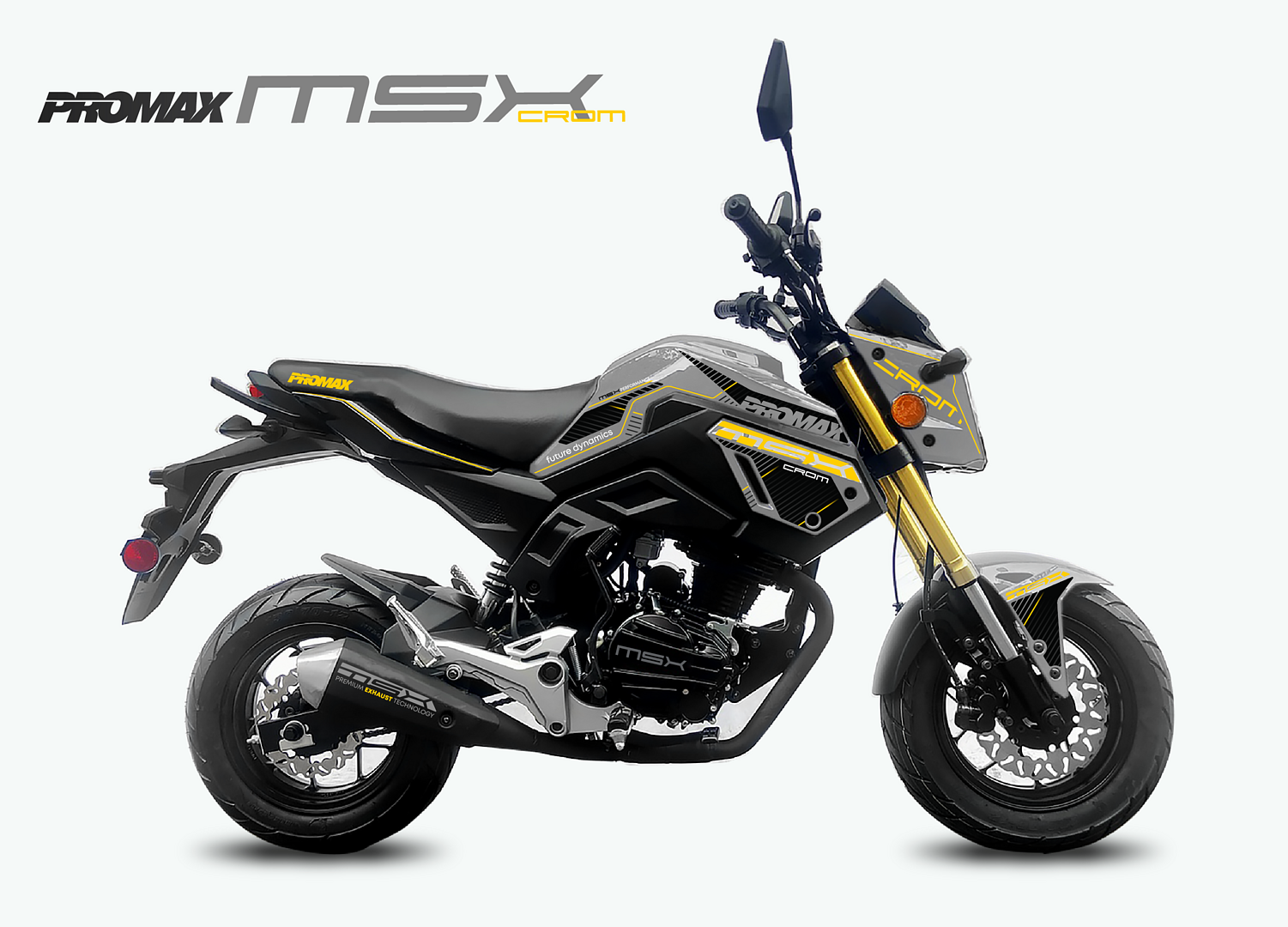 Модель SMSX200 CROM оснащена идентичным своему собрату HONDA MSX 200 двигателем, который обладает мощностью 20 л.с. Двигатель имеет объем 200 куб.см, хотя в документах и на технике указано 49 куб.см. Благодаря этому, мотоцикл не требует регистрации и достаточно иметь только категорию водительских прав М.